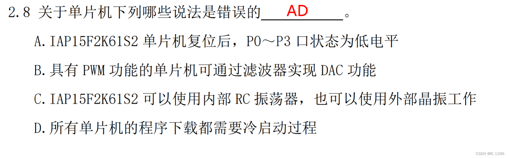 IAP15F2K61S2单片机复位后,P0~P3口状态为准双向/弱上拉模式,