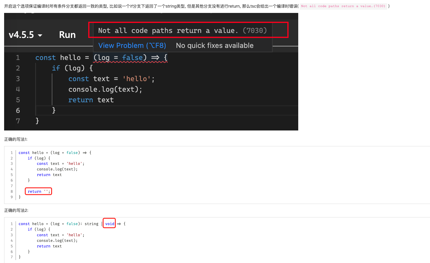 noImplicitReturns:开启这个选项保证编译时所有条件分支都返回一致的类型。