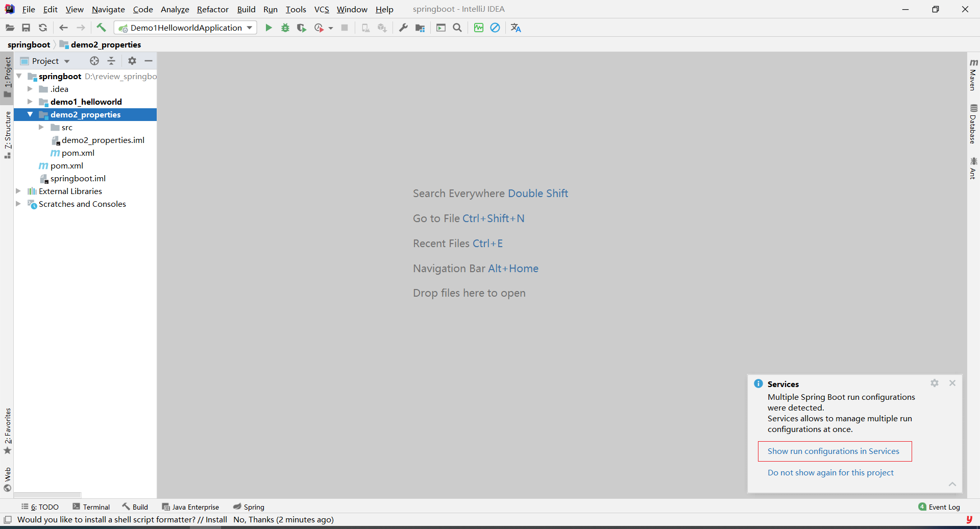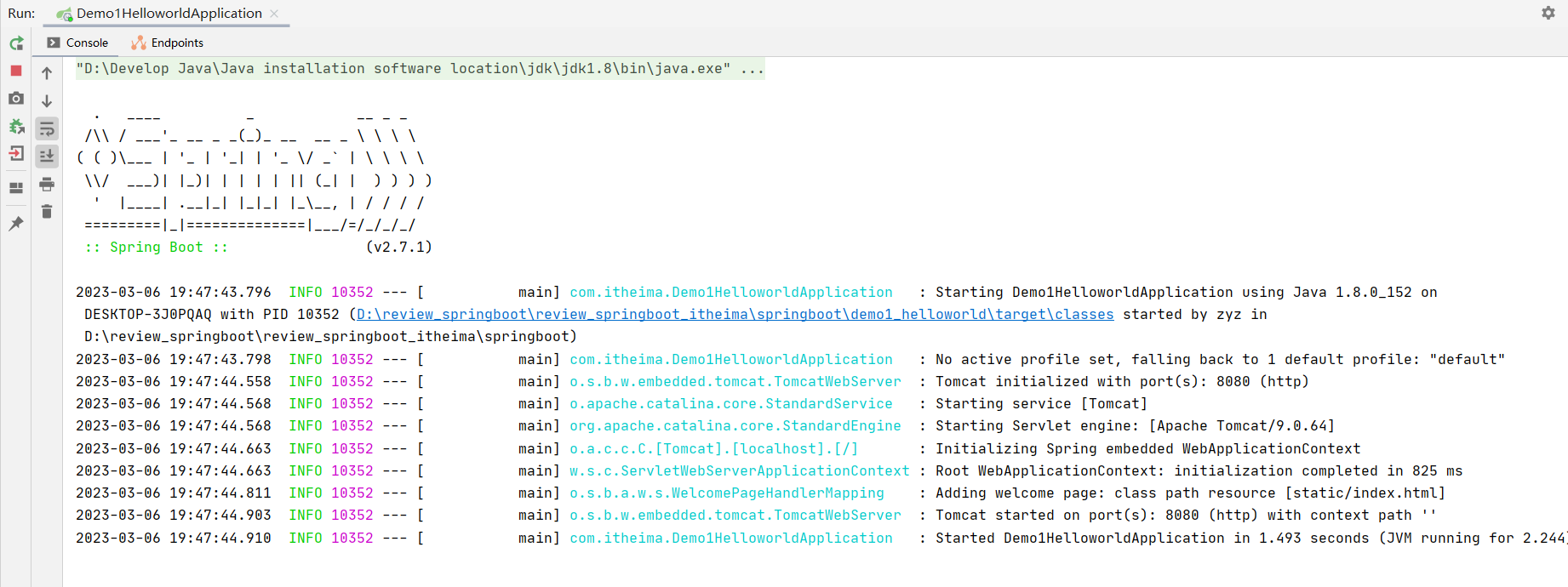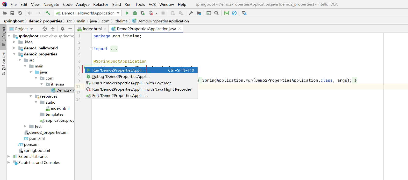 public class Demo1HelloworldApplication {public static void main(String[] args) {SpringApplication.run(Demo1HelloworldApplication.class, args);}}