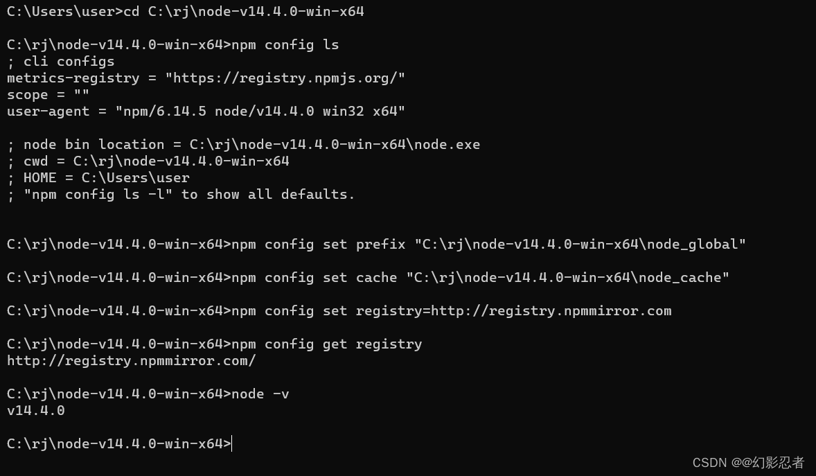npm config set prefix "C:\rj\node-v14.4.0-win-x64\node_global"