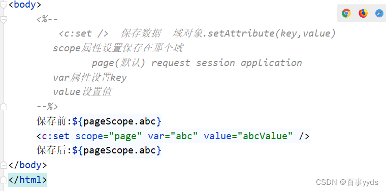 作用:主要代替jsp页面中的表达式脚本在jsp页面中进行数据输出.使得页面变的更加简洁。