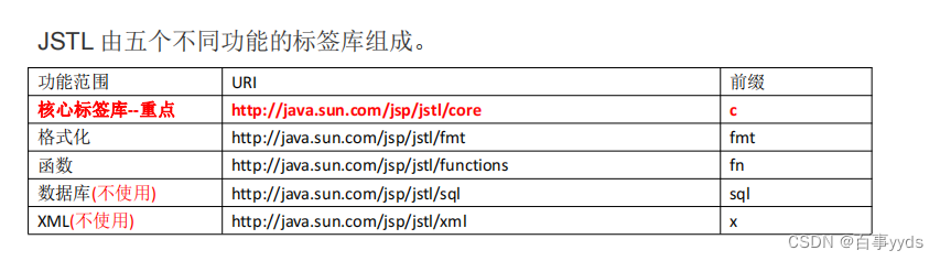 第一步: 导入相关的jar包 第二步: <%@ taglib prefix = "c" url="资源路径">