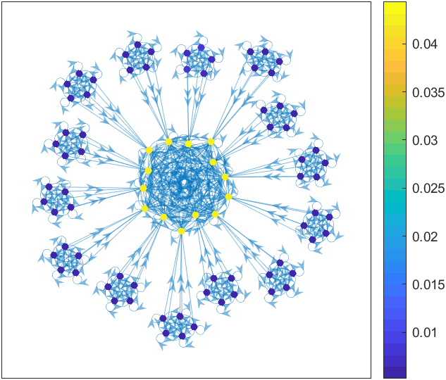 pr = centrality(G,'pagerank','MaxIterations',200,'FollowProbability',0.85);