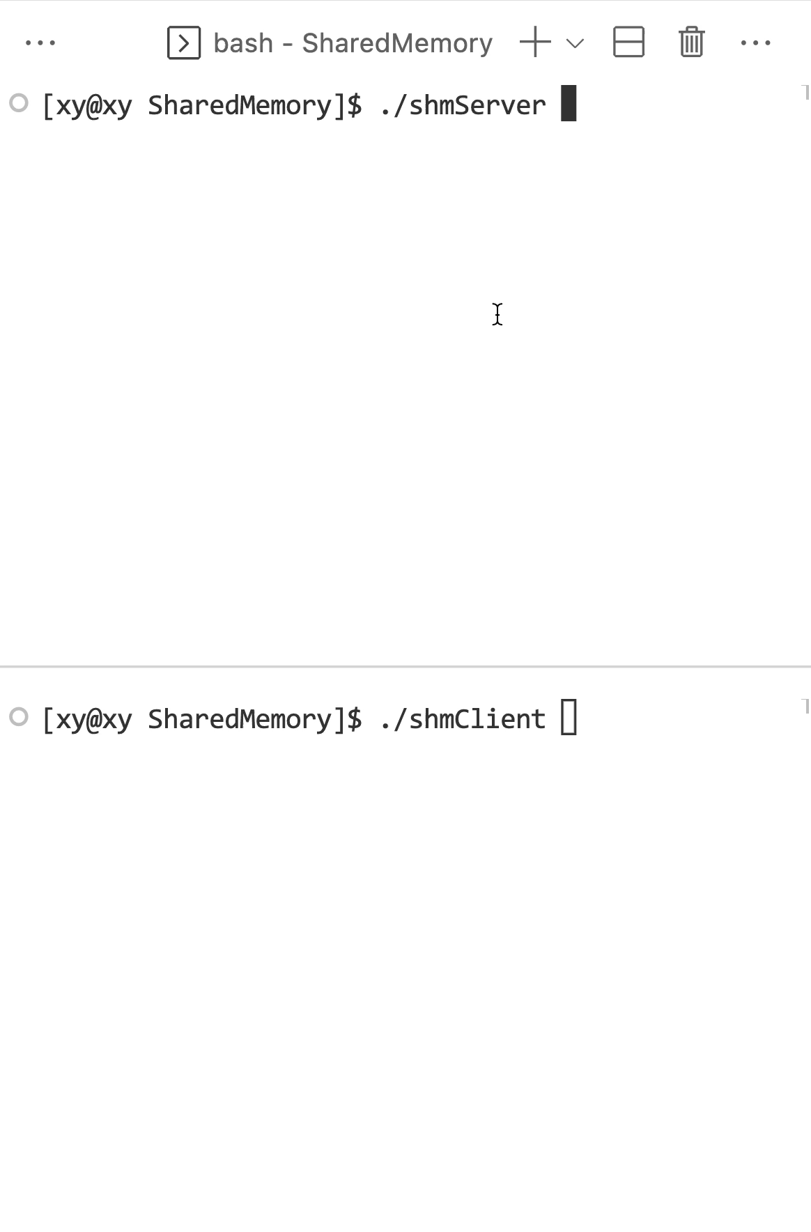 现在初步实现了能够用键盘输入信息,但问题是服务端会一直读取内容,而且两个进程互相不知道对方的存在,只知道做自己的事。这说明共享内存没有访问控制。它可能会造成并发问题,导致进程间的数据不一致。